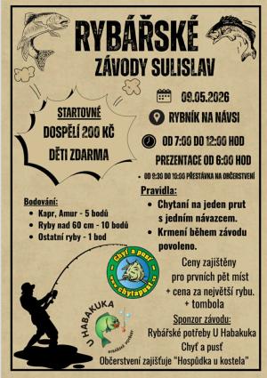 V sobotu 9. května 2026 proběhnou v Sulislavi závody v rybaření.