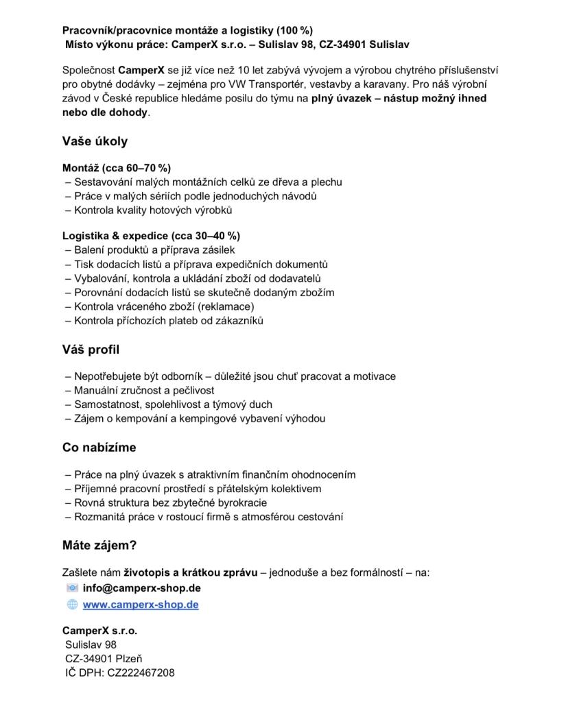 Nabídka pracovních příležitostí ve společnost CamperX a Kion.